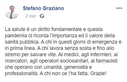 Questo quanto pubblicato dal Pres. Comm. Sanità Reg. Campania On. Graziano