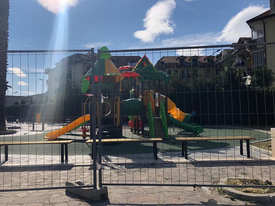 "Parco giochi di Via Antica Giardini (ex isola ecologica) in adiacente il VI Circolo Didattico. L’intervento ha previsto la realizzazione di aree gioco “inclusive”, ovvero di giochi che al concetto di accessibilità affiancano anche quello dell’inclusione, consentendo l’utilizzo congiunto da parte di tutti i bambini, siano essi normo-dotati che diversamente abili, senza barriere e senza divisioni. Mancano pochi giorni al completamento. Il progetto di quest’amministrazione al quale stiamo lavorando, è quello di una città accogliente, vivibile ed inclusiva."