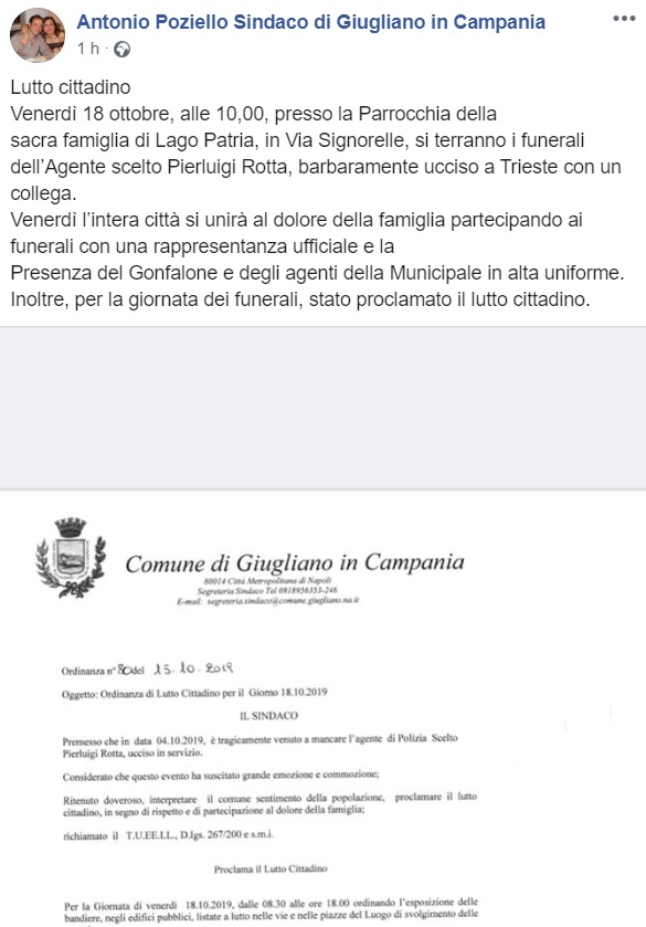 Questo quanto pubblicato su facebook dal Sindaco di Giugliano, Antonio Poziello: