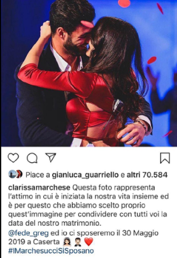 Federico Gregucci, figlio dell'ex mister della Casertana Angelo Gregucci ha scelto Caserta come location per il suo matrimonio con Clarissa Marchese, ex tronista di Uomini e Donne che scelse proprio lui nel corso della trasmissione televisiva condotta da Maria De Filippi.