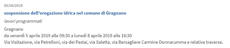 Questo quanto comunicato sul sito web della società Gori