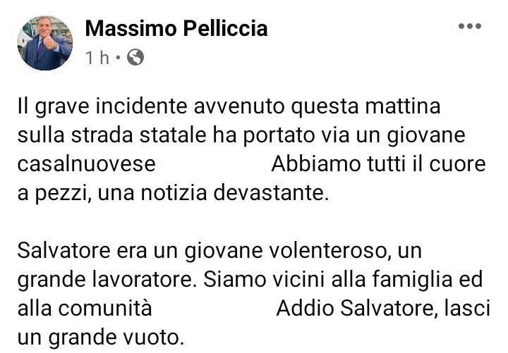 Questo quanto pubblicato sulla pagina fb del Sindaco di Casalnuovo