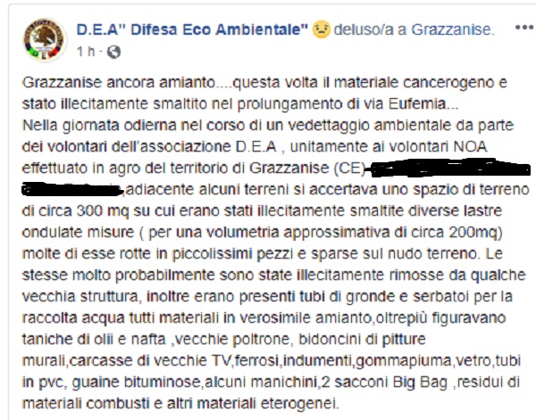 Questo il post pubblicato sulla pagina fb ufficiale della D.E.A.