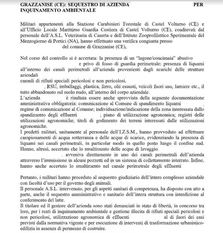 Questa parte della nota stampa del Comando Provinciale Carabinieri di Caserta: