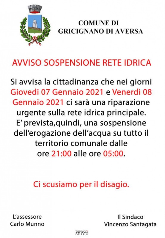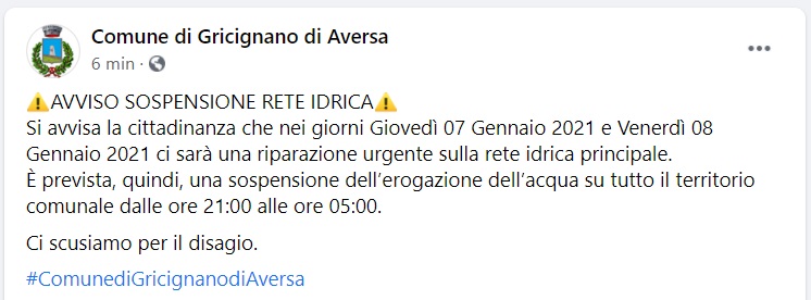 Questo quanto apprendiamo dalla pagina fb del Comune di Gricignano