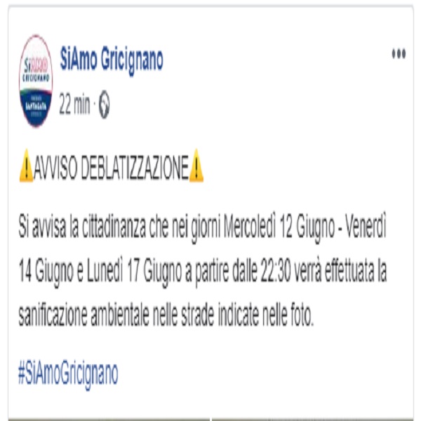 Questo il post pubbicato sulla pagina fb 'Siamo Gricinano'.