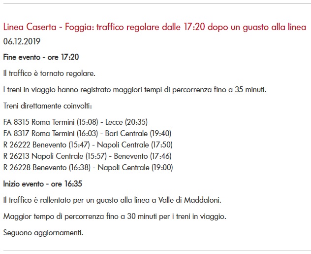 Questo quanto apprendiamo da Trenitalia