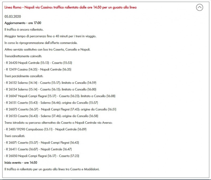Questo quanto apprendiamo da Trenitalia
