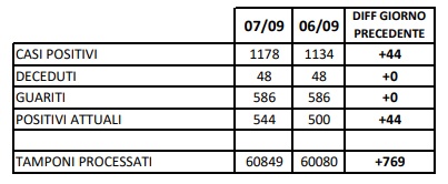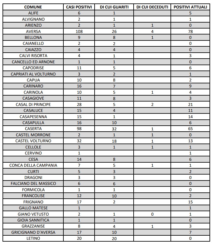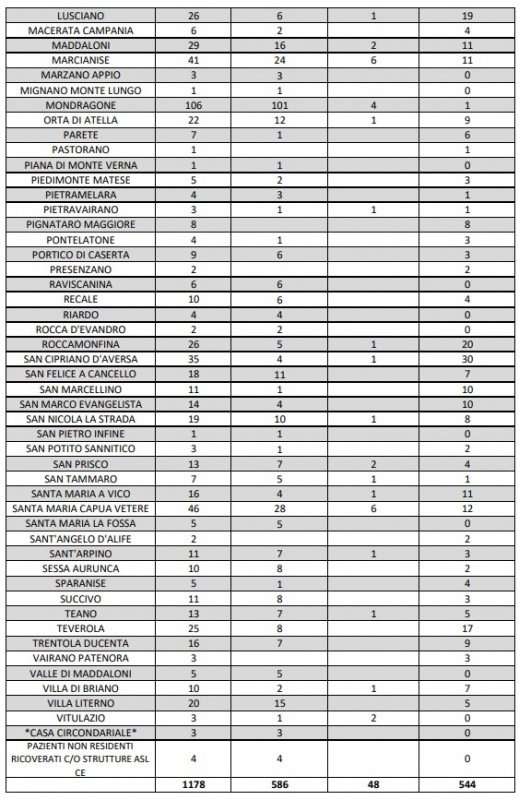 H15. 8/9. Agg. Coronavirus Prov. CE. 44 nuovi positivi. Dati ASL Comune per Comune