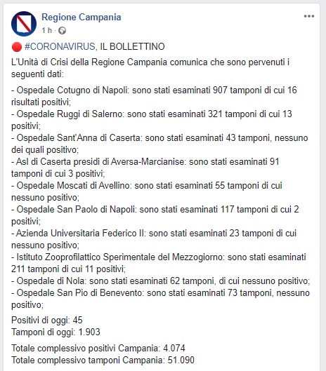 Questo quanto comunicato dalla Regione Campania