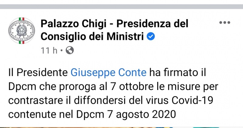 Lo apprendiamo dalla pagina Facebook Palazzo Chigi-Presidenza del Consiglio dei Ministri.