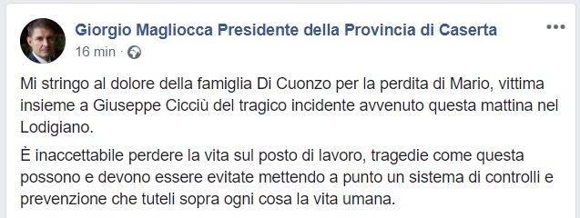 Questo il commento del Presidente della Provincia di Caserta Giorgio Magliocca a seguito dell'inciente ferroviario di Lodi