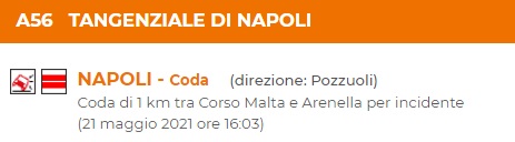 INCIDENTE in Tangenziale. Coda di 1 km tra Corso Malta e Arenella