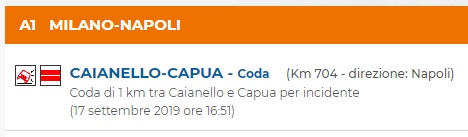 INCIDENTE SULL'A1. Un km di coda tra Capua e Caianello