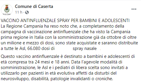 Lo apprendiamo dalla pagina Facebook del Comune di Caserta
