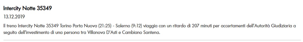 Questo quanto apprendiamo da Trenitalia