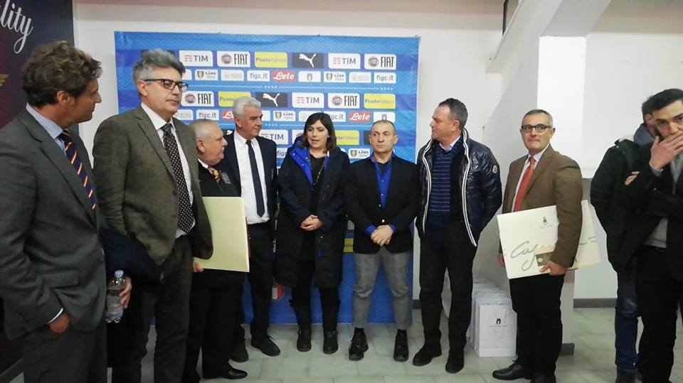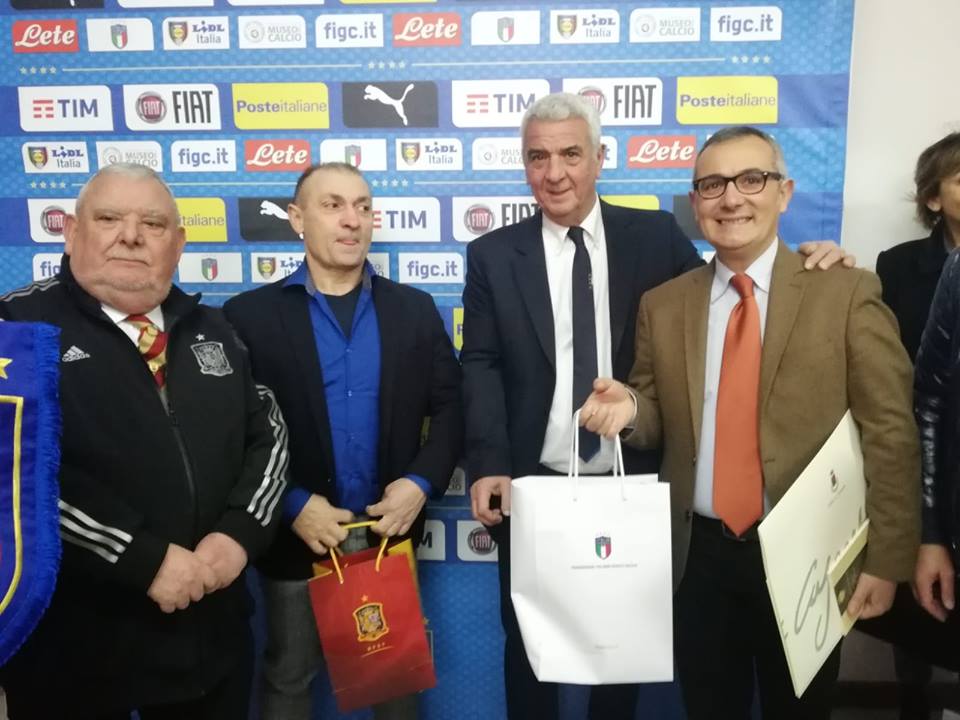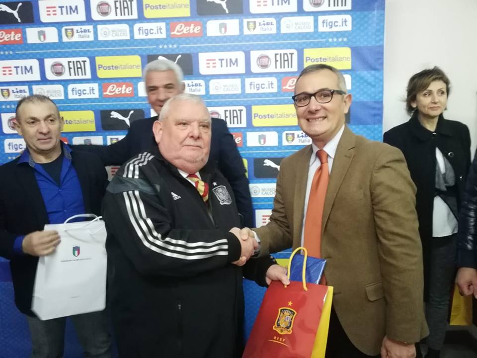 "Un caloroso ringraziamento alla Federazione Italiana Giuoco Calcio per aver scelto Caserta per la gara di ieri tra Italia e Spagna under 19. La manifestazione è stata un succcesso con oltre 2000 spettatori sulle tribune dello Stadio Pinto che hanno applaudito la netta vittoria degli azzurrini. Nel corso dell'intervallo l'Amministrazione comunale di Caserta rappresentato dall'assessore Alessandro Pontillo e dal Presidente del Consiglio Comunale Michele De Florio ha donato alla Figc e alla Real Federazione Calcistica Spagnola il Codice Leuciano ed alcune stampe storiche di vedute di Caserta, in segno di riconoscimento e ricordo."