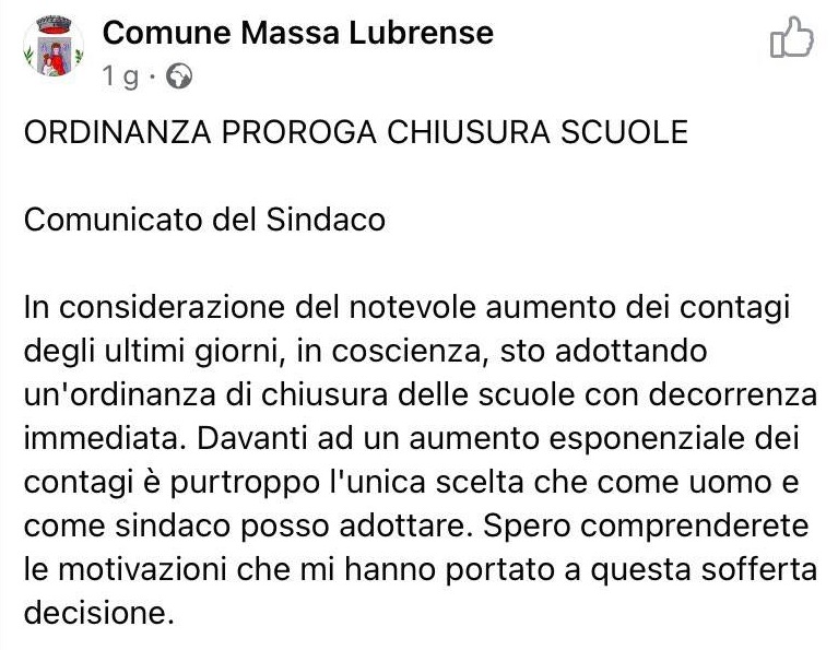 Questo quanto si può apprendere dalla pagina facebook del Comune napoletano di Massa Lubrense