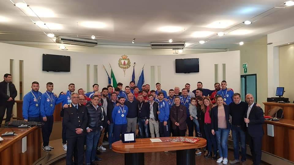 "Mattinata speciale oggi in sala consiliare, la squadra calcistica U. S. Marcianise è stata invitata dall'amministrazione per festeggiare due vittorie sportive importanti: