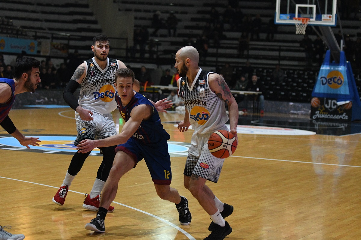 "La Decò Caserta supera l’ostacolo Salerno per 74-72, si conferma capolista del girone D e porta a quattro punti il suo vantaggio sulle immediate inseguitrici. È stata una vittoria sofferta , quella dei bianconeri, ma ampiamente meritata sia perché i padroni di casa hanno praticamente sempre condotto nel punteggio raggiungendo un vantaggio massimo di 23 punti,-spiega la nota- sia perché la settimana che aveva preceduto lo scontro al vertice era stata quanto mai tribolata con Dip ed Hassan che hanno saltato l’intera sessione di allenamento. Il centro italo-argentino è rientrato in squadra solo sabato mattina, mentre Hassan non ha praticamente messo più piede in campo dopo la partita di Palermo ed è stato fortemente in dubbio fino alle battute iniziali della gara.-si legge nella nota- A questo si è aggiunto Petrucci che ha subito un lieve infortunio alla caviglia nell’allenamento di giovedì e si è presentato febbricitante al Paladecò prima della gara. Nonostante ciò, la Decò ha condotto con autorità per tre quarti di gara, risentendo, poi, della stanchezza nella parte finale e consentendo agli ospiti di rientrare in partita ed impattare il punteggio prima del tap-in risolutivo di Ciribeni a due secondi dalla sirena finale.-spiega la nota-Nel primo quarto dopo un avvio sul piano dell’equilibrio (6-4, 8-7,10-10) è stata la Decò Caserta a prendere decisamente l’iniziativa grazie soprattutto ad una eccellente difesa che ha vanificato gli attacchi di Salerno. In attacco i bianconeri sono stati bravi a sfruttare i miss-match sotto canestro e, grazie anche al ritrovato tiro dalla distanza, hanno messo a segno un break di 10-0 che ha consentito loro di far registrare al primo intervallo un vantaggio in doppia cifra (20.-10).-spiega la nota-Nel secondo periodo nei primi due minuti il punteggio è stato mosso solo dalla linea del tiro libero, poi è stata Salerno a sfruttare la momentanea difficoltà della Decò in attacco per dimezzare lo svantaggio (23-19) prima che Petrucci e Rinaldi ritrovassero con continuità il canestro avversario e contribuissero ad ampliare nuovamente il gap tra le due squadre; gap che ga raggiunto il divario massimo di 14 punti ((38-24, 40-26) prima che sulla sirena Diomede lo riducesse a 12 (40-28).-spiega la nota-Nel terzo periodo sei punti consecutivi di Bottioni hanno ridato alla Decò i 14 punti di vantaggio, che sono stati poi incrementati dai canestri di Rinaldi, Petrucci e dello stesso Bottioni. È stato Petrucci dalla lunetta dopo canestro realizzato a segnare sul tabellone il massimo vantaggio di 21 punti sul 54-33. I bianconeri hanno rallentato il loro gioco e consentito così a Salerno di ridurre lo svantaggio fino al -13 con cui si è chiuso il terzo periodo (58-45).