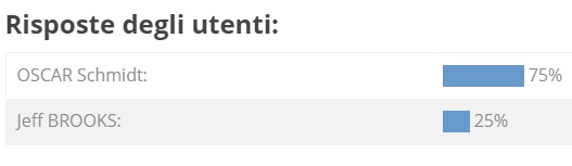 Una nuova sfida del sondaggio LEGGENDE JUVECASERTA è andata in archivio (qui il regolamento). Infatti Oscar con il 75% ha superato Jeff Brooks e così è la prima 'ala grande' a raggiungere la finale del rispettivo ruolo (qui il tabellone completo). Al prossimo weekend per un nuovo sondaggio, e grazie per aver votato sino a qui.