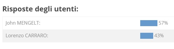 Concluso anche il quarto weekend del sondaggio LEGGENDE JUVECASERTA (qui il regolamento), che ha visto un duello testa a testa tra Mengelt e Carraro con il primo che l'ha spuntata grazie al 57% delle preferenze contro ovviamente il 43% dell'avversario. Sarà quindi l'americano dal biondo caschetto a sfidare nella finale per la posizione di guardia Enzo Esposito. Appuntamento al prossimi fine settimana per la prima sfida nel ruolo di ala piccola. Un ringraziamento, doveroso, a voi tutti che ci state seguendo e che state votando. Grazie!