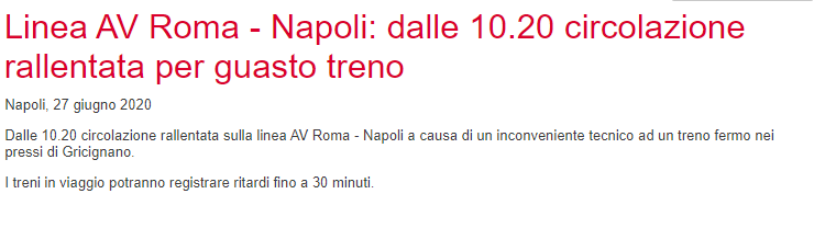 Questa la news apparsa sul sito ufficiale di Trenitalia: