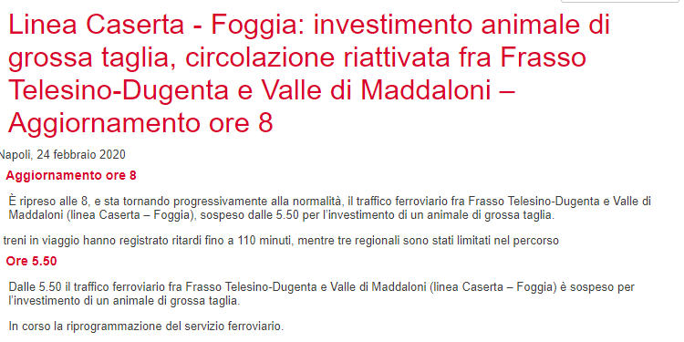 Questa la news apparsa sul sito Rfi (Rete Ferroviaria Italiana):