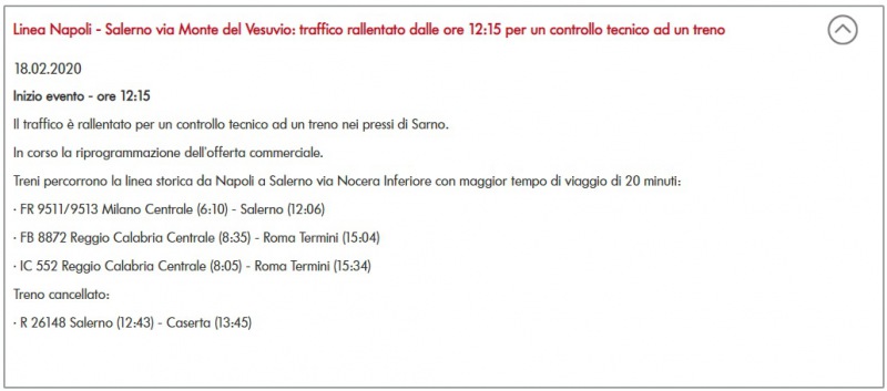 Questo quanto apprendiamo da Trenitalia