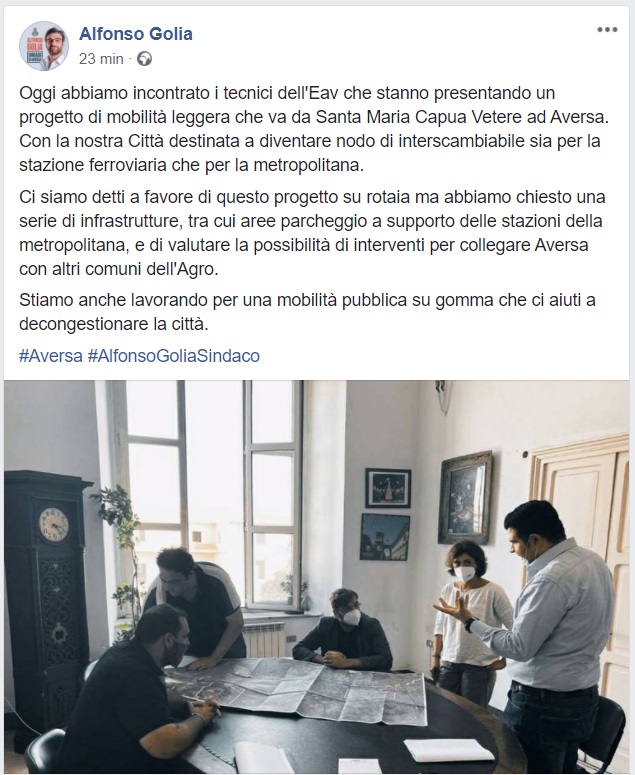 Linea SMCV-Aversa. Incontro con i tecnici dell'EAV al Comune di Aversa