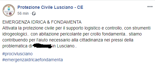 Questo il post pubblicato sulla pagina Facebook della Protezione Civile di Lusciano: