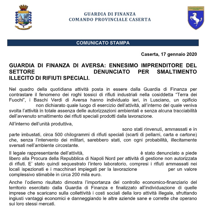 Pubblichiamo nota stampa del Comando Provinciale Guardia di Finanza Caserta
