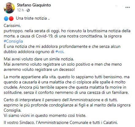 Dalla pagina Facebook del Sindaco di Caiazzo Giaquinto