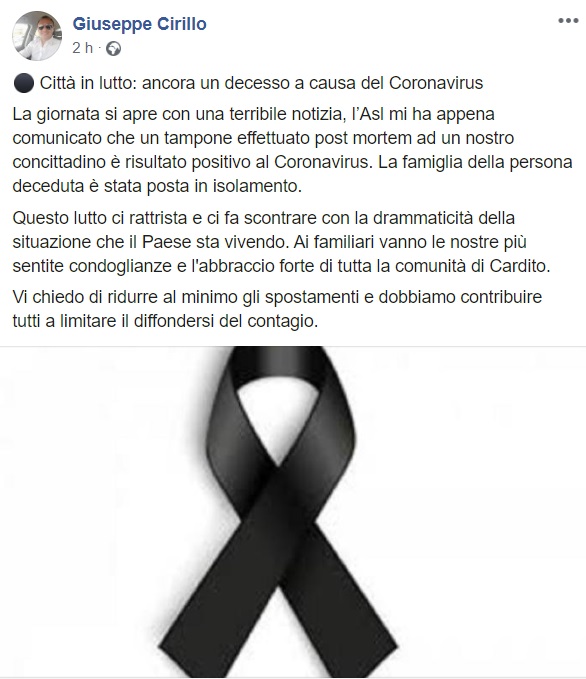 Questo quanto apprendiamo dalla pagina facebook del Sindaco Cirillo: