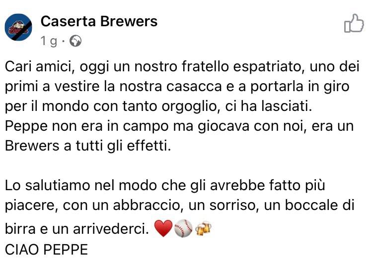 Questo quanto pubblicato sulla pagina fb della società Caserta Brewers