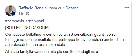 Questo quanto comunicato dal Sindaco Bene