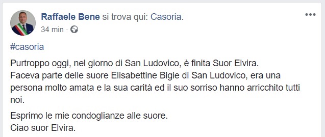 Questo quanto pubblicato dal Sindaco di Casoria