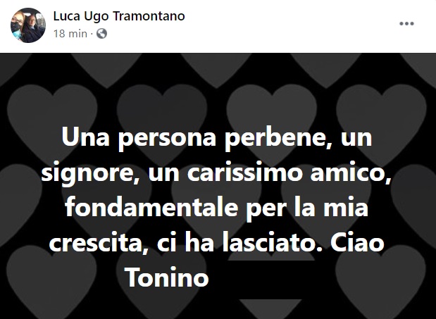"Una persona perbene, un signore, un carissimo amico, -si legge nella nota- fondamentale per la mia crescita, ci ha lasciato. Ciao Tonino"