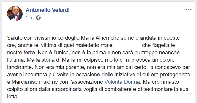 Questo il messaggio dell'ex Sindaco di Marcianise Velardi