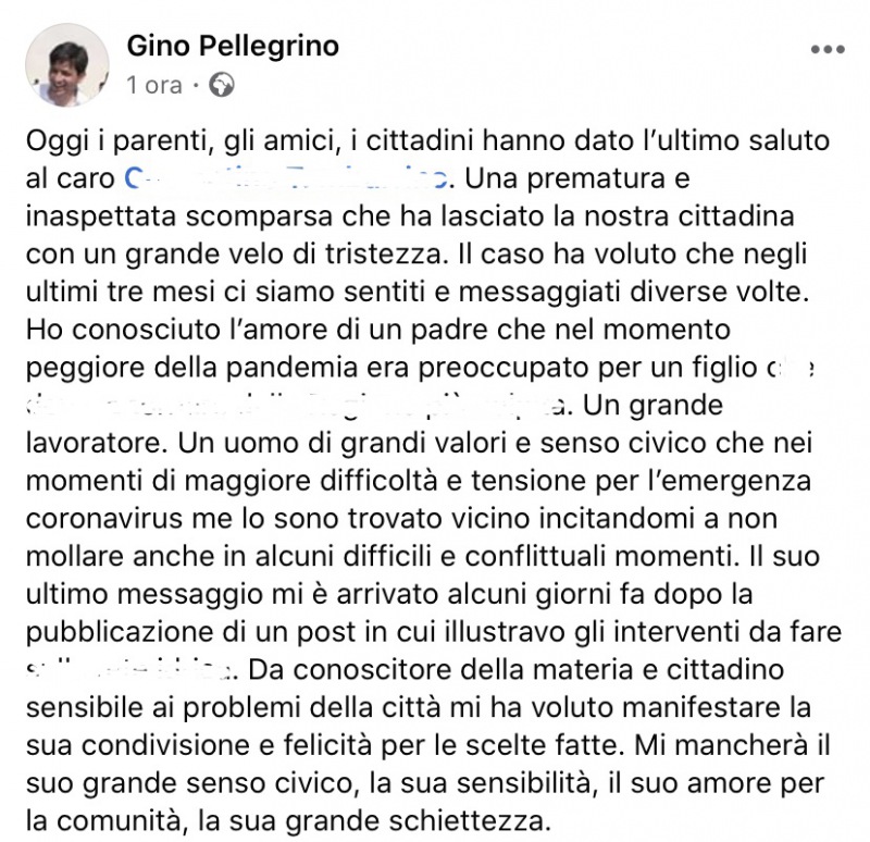 Questo quanto comunicato dal Sindaco Pellegrino