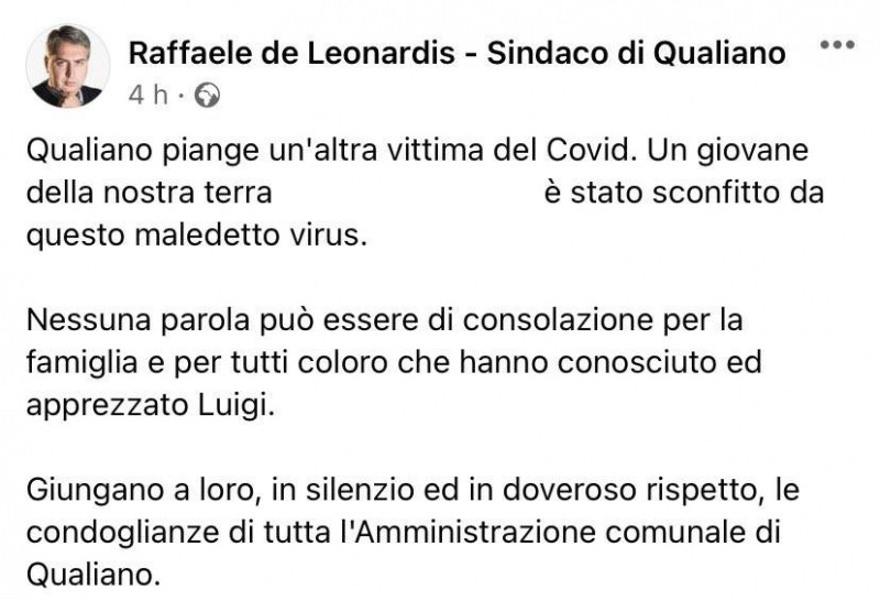 Questo quanto pubblicato sulla pagina fb del Sindaco di Qualiano
