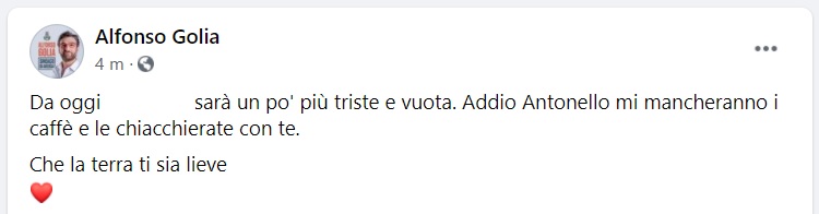 Questo quanto pubblicato sulla pagina facebook del Sindaco Golia