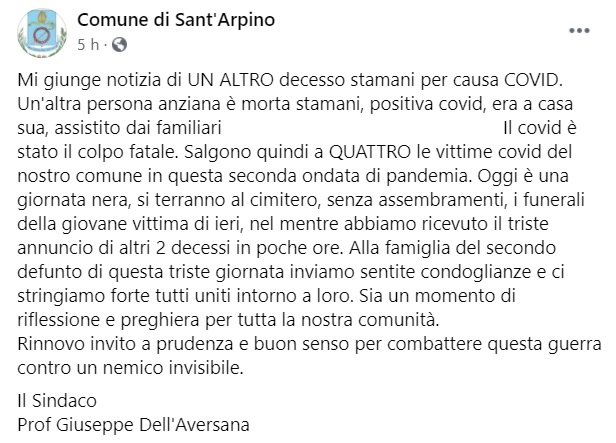Questo parte di quanto apprendiamo dalla pagina facebook del Comune di Sant'Arpino: