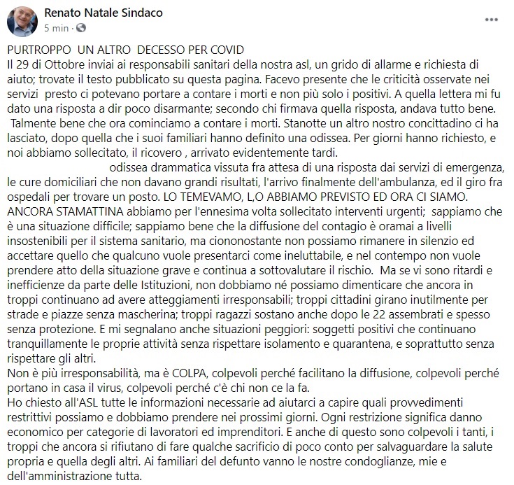 Questo quanto pubblicato sulla pagina facebook del Sindaco di Casal di Principe