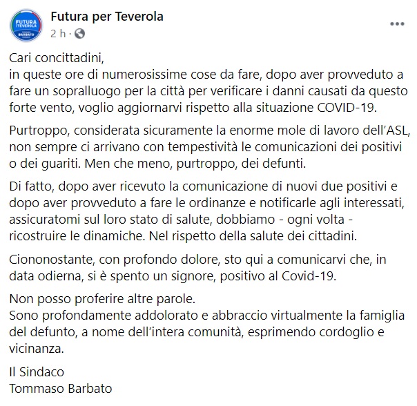 Questo quanto apprendiamo dalla pagina facebook Futura per Teverola: