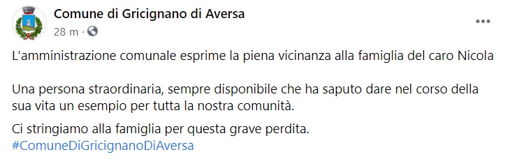 Questo parte di quanto pubblicato sulla pagina facebook del Comune di Gricignano di Aversa: