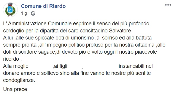 Questo quanto apprendiamo dalla pagina facebook del Comune di Riardo: