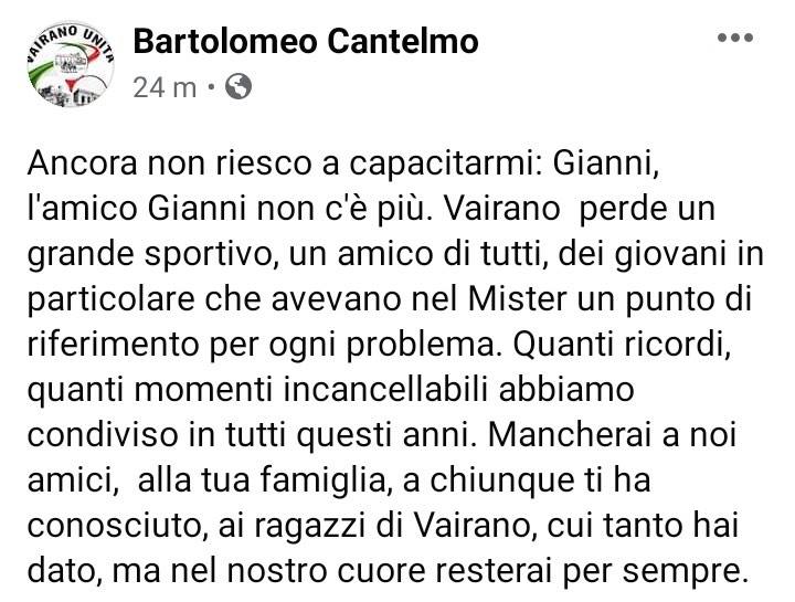 Questo quanto pubblicato sul proprio profilo facebook dal Sindaco di Vairano Patenora