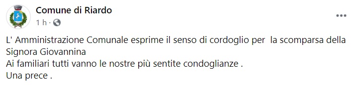 Questo quanto apprendiamo dalla pagina facebook del Comune di Riardo: