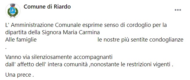 Questo quanto apprendiamo dalla pagina facebook del Comune di Riardo: